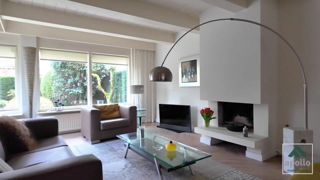 Upon entering the spacious hallway, you'll instantly feel the warm and welcoming atmosphere. The hall provides access to the modern toilet and the bright, generously proportioned living room. Here, the charming fireplace and beautiful honeycomb PVC flooring with comfortable underfloor heating create the perfect foundation. Adjacent to the living room, you'll find every cook's dream: a fully equipped, garden-facing open-plan kitchen with a large cooking island. The kitchen is fitted with premium built-in appliances, including a dishwasher, combination microwave/oven, induction hob, refrigerator, Quooker instant hot water tap, and even a water dispenser and waste disposal unit.