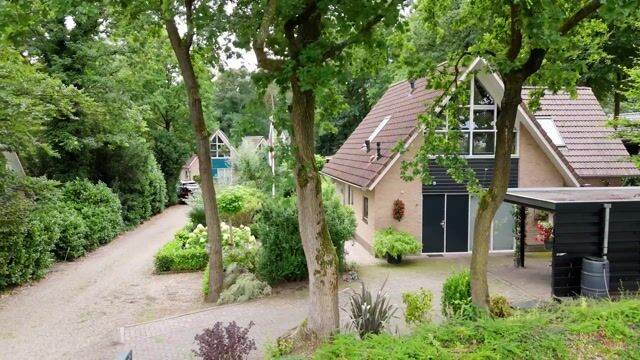 De woning wordt omringd door een prachtige tuin, met een grote variatie aan beplanting. Je ziet hagen, planten, struiken met bloemen, een gazon en een groot terras. Er is een grondpomp aanwezig met kraan bij de carport en een kraan in de tuin. Naast de carport is een houten berging, voor de (elektrische) fiets, en een deel van de tuin is momenteel het domein van de kippen. Blikvanger in de tuin is de grote, houten veranda annex tuinkamer, groot genoeg voor een zit- en een eetgedeelte. Ook dit bijgebouw heeft een handige berging, voorzien van elektra. Hier bevindt zich ook de tweede oprit, ook geschikt voor een caravan of camper.