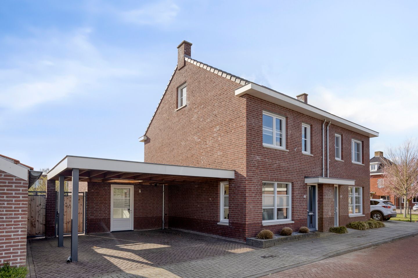 Aan de voorzijde heb je een eigen oprit met dubbele carport uit 2022, waar je met gemak 2 auto's onder kunt stallen.