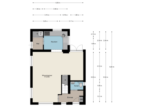 Bij binnenkomst treft u een verzorgde hal met een riant toilet, afgewerkt met zwart-wit tegelwerk, smaakvol behang en een eigentijdse uitstraling. Het toilet is voorzien van een zwevend closet, fonteintje en een raam voor natuurlijke ventilatie. De meterkast is keurig weggewerkt en de glas-in-looddetails geven de entree extra karakter en sfeer.