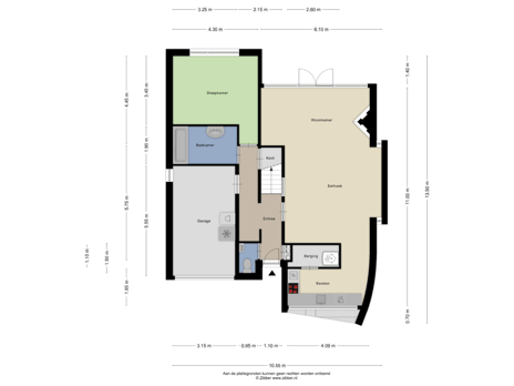 Inpandig is de garage (18m²) bereikbaar. Deze beschikt over een raam, elektrische sectionaal poort en elektra.