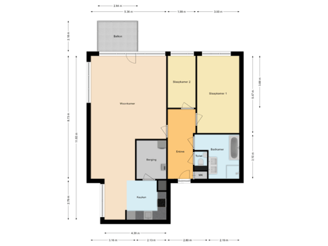 Portiek met toegang tot het appartement. Vanuit de hal zijn nagenoeg alle vertrekken te bereiken. Op de vloer ligt een nette laminaat vloer welke is doorgelegd in het gehele appartement (op de toiletruimte en de badkamer na). De royale woonkamer van circa 40 m2 biedt verschillende indelingsmanieren. De zithoek en de eethoek zijn momenteel van elkaar gescheiden en na het eetgedeelte is aansluitend de keuken te bereiken. Vanwege de hoekligging is de gehele woonkamer opvallend licht door de grote raampartijen aan zowel de achterkant als zijkant van het appartement. Vanuit de woonkamer is een fijn balkon bereikbaar dat een heerlijke zitplek biedt in alle rust aan de achterzijde van het appartementencomplex. De half open keuken is voorzien van een net keukenmeubel in hoekopstelling voorzien van diverse onder- en bovenkasten, laden en apparatuur: elektrische kookplaat, afzuigkap, oven en koelkast. Vanuit de keuken is een praktische berging / bijkeuken aanwezig met de aansluitingen voor was- en droogapparatuur. Daarnaast is er nog voldoende ruimte over voor opslag.