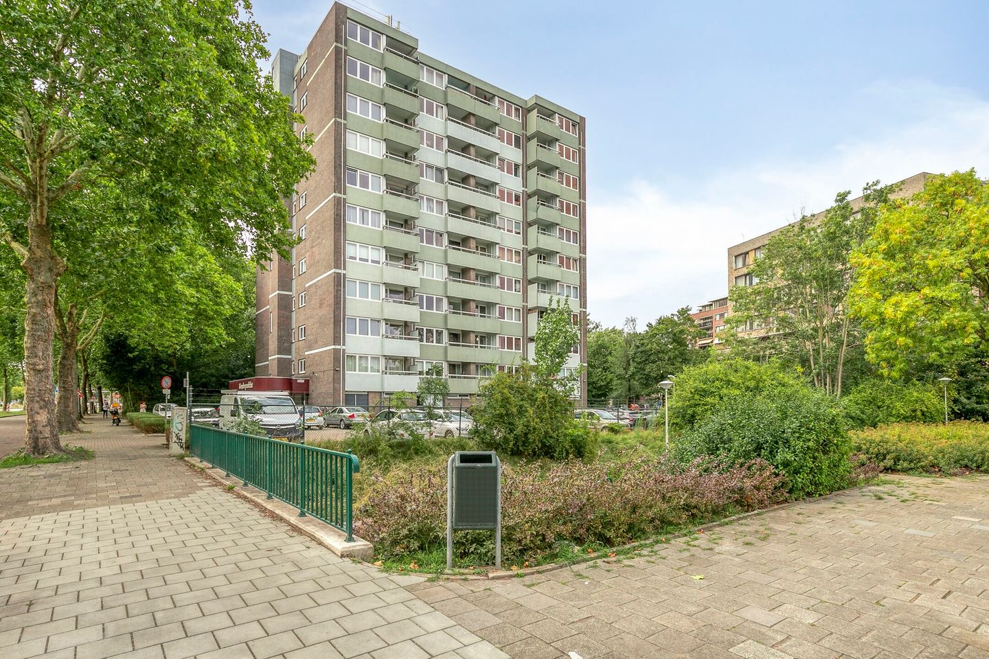 Centrale afgesloten entree voorzien van brievenbussen, intercom met videofoon en doorgang naar portaal waar de toegang is tot de bergingen, trappenhuis en lift. Voldoende parkeerplaatsen op het terrein rondom het gebouw.