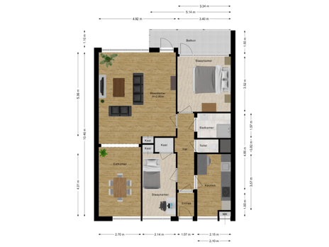 Het appartement beschikt over twee slaapkamers, beide afgewerkt met een keurige laminaatvloer in lichte kleurstelling. De hoofdslaapkamer ligt aan de achterzijde en biedt direct toegang tot het balkon een fijne plek om de dag rustig te beginnen of af te sluiten. De tweede slaapkamer bevindt zich aan de voorzijde van het appartement en is multifunctioneel in te richten, bijvoorbeeld als werk-, logeer- of hobbykamer. De kamer is voorzien van twee praktische inbouwkasten.