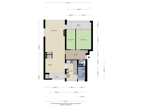 Dit goed ingedeelde appartement heeft twee slaapkamers. De grootste slaapkamer heeft directe toegang tot een balkon en de andere slaapkamer wordt nu als kleedruimte gebruikt. Een invulling als baby-/kinderkamer, als thuiswerkplek of logeerkamer is ook mogelijk.