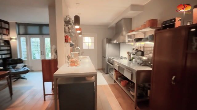 The warm oak floor, the wood-burning stove, the French doors and the sturdy open kitchen make this a cosy home.