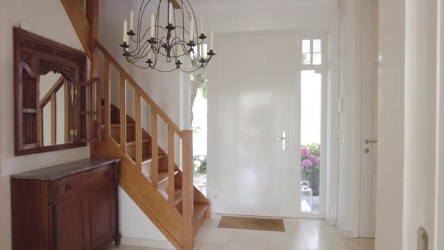 Inside, the spacious hallway features a sandblasted marble tiled floor with underfloor heating, which extends throughout the entire ground floor. This area also includes the meter cupboard (17 groups, 6 residual-current devices), a cloakroom, a large stair cupboard and a guest toilet.