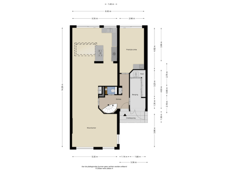 Aangrenzend aan de entree bevindt zich de praktijkruimte van circa 10 m², momenteel ingericht als thuissalon. Deze kamer is voorzien van een pantry en kan naar wens worden omgetoverd tot een kantoor aan huis, speelkamer of extra slaapkamer. De aangrenzende berging biedt extra opbergruimte en huisvest tevens de aansluitingen voor het witgoed.