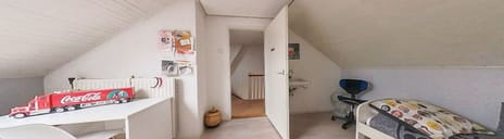 De zolder is bereikbaar via een vaste trap en begint met een ruime voorzolder. Hier vind je de aansluitingen voor je wasmachine en droger, en hangt de CV-ketel. Er is hier een dakraam en slimme bergruimte gecreëerd onder de schuinte door middel van schuifdeuren.