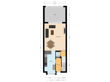- 38 m² (7.50 metre deep and 5.00 metre wide)