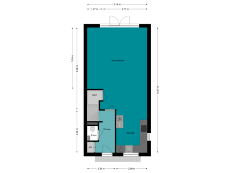 - 68 m² (12.48 metre deep and 5.45 metre wide)