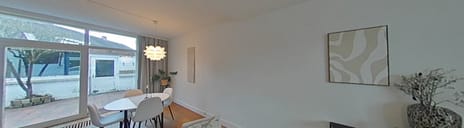 De ruime en lichte woonkamer is afgewerkt met een mooie houten vloer. Het zitgedeelte is aan de voorzijde van de woning gesitueerd en heeft een vrij uitzicht. Het eetgedeelte is aan de achterzijde gesitueerd en middels een schuifpui heb je toegang tot de achtertuin. Zo kun je op mooie dagen extra van de tuin genieten.