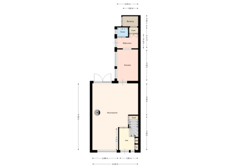 Aansluitend bereikt u de bijkeuken. Deze praktische ruimte is afgewerkt met een gietvloer en deels betegelde wanden. U vindt hier een vaste kastenwand en een deur naar de tuin. Vanuit de bijkeuken heeft u tevens toegang tot de toiletruimte. Het toilet is netjes afgewerkt, deels betegeld en voorzien van een staand toilet en inbouwspots.