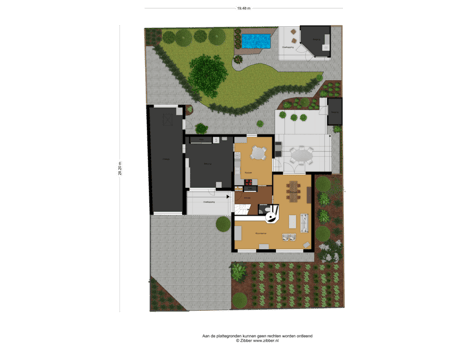De achtertuin ligt op het zuid/zuidoosten en is royaal en speels ingedeeld met drie terrassen, sierbestrating, een gazon, borders en een vijver met een gemetselde waterput. Het grootste terras grenst direct aan de woonkamer en is voorzien van een overkapping en een elektrisch zonnescherm. Verder vind je in de tuin een houten berging met pannendak en een tuinhuis met overkapping, waar je het hele jaar door fijn kunt zitten.