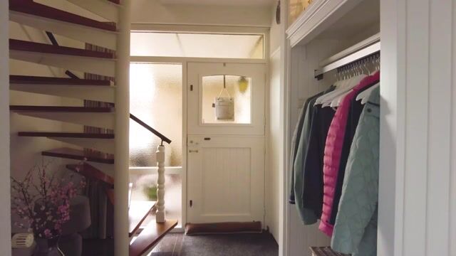 Je komt binnen via een overdekte entree in een ruime hal met natuurstenen vloer, garderobenis, meterkast, toilet en de trap naar boven. Vanuit de hal stap je de woonkamer of keuken binnen.