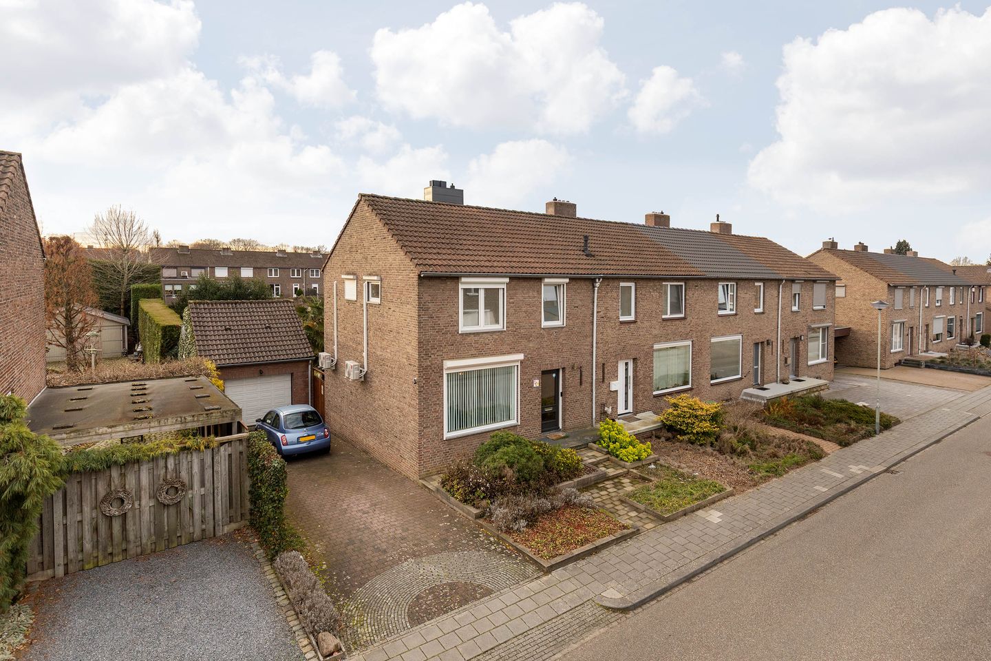 De woning beschikt over een ruime oprit met toegang tot de garage, welke is voorzien van een praktische bergzolder. Daarnaast bevindt zich aan de zijkant van de woning een poort die toegang geeft tot de achtertuin.