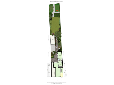 Vanuit de woonkamer of slaap-/hobbykamer bereiken we het terras in de tuin. Vanaf het terras is zowel de garage als het zeer diepe perceel bereikbaar. Aansluitend aan het terras vinden we een overkapping en ruime berging. Daarachter loopt het perceel nog ver door met veel groen. Aan het eind van het perceel is er een toegangspoort te vinden zodat de tuin ook via de toegangsweg aan de achterzijde bereikbaar is. De grote oppervlakte van de tuin zorgt voor veel mogelijkheden en is bovendien door de vrije ligging voorzien van veel privacy.