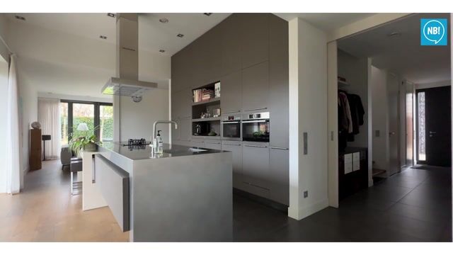 Doorgang naar moderne keuken, gelegen in het hart van de woning en voorzien van diverse inbouwapparatuur. De keuken vormt de verbindende lijn tussen de eerste living, het eetkamergedeelte en tweede living die onderling weer via de sfeervolle gashaard met elkaar in contact staan. Al deze vertrekken staan op hun beurt weer in contact met de tuin. Vanuit de keuken is er doorgang naar de bijkeuken met was- en droogopstelling, doorgang naar de ruime inpandige berging, met ruimte voor o.a. fietsen, opstelling balansventilatie en CV-Ketel (2022).