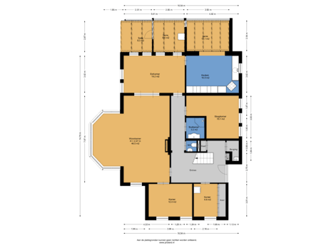 Begane grond: Entree/hal, toilet, woonkamer met erker (circa 46 m²), eetkamer (circa 19 m²), woonkeuken met aangebouwde serre, 2 slaapkamers, badkamer, studeer-werkkamer, bergruimte. Aan de achterzijde van de woning bevindt zich een aangebouwde serre.