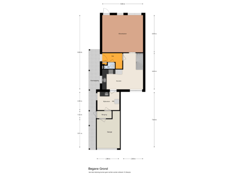 Begane grond: hal/entree met toilet, meterkast en garderobenis, half-open keuken met trapopgang naar de verdieping en binnendoor naar de bijkeuken. Ruime woonkamer met deur naar de achtertuin. De bijkeuken beschikt over een klein keukenblok met wastafel en witgoedaansluiting. Vanuit de bijkeuken toegang tot berging met zij-entree en binnendoor naar garage.