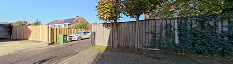 De achtertuin is middels schutting volledig afgeschermd van de voorkant van het huis en uitsluitend via het huis benaderbaar. Vanuit de achtertuin is de voortuin wel toegankelijk middels een schuttingdeur.