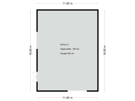 De korte stal ernaast is uit ca. 1985 met een afmeting van ca. 11 x 22 meter lang en is ook in gebruik geweest voor varkens.