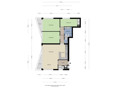 Entree, hal, stookruimte, wasruimte, ruime woonkamer met open keuken voorzien van 5-pits gaskookplaat, afzuigkap, koelkast, vriezer, vaatwasser, oven en magnetron. Vanuit de woonkamer is er toegang tot het balkon op het oosten en de gang, welke toegang biedt tot het toilet (modern). Dit appartement beschikt over maar liefst drie slaapkamers, welke alle drie royaal te noemen zijn! Eén van de slaapkamers heeft toegang tot het balkon op het zuidoosten en één slaapkamer beschikt over een vast kastenwand.