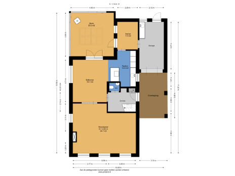 - Begane grond: zij-entree, via de oprit/carport. Ruime hal met toilet, meterkast en trapopgang. Ruime eetkamer/woonkeuken en dubbele deuren naar de woonkamer. Tweede woonkamer/serre. Bijkeuken, aangebouwde garage/berging.