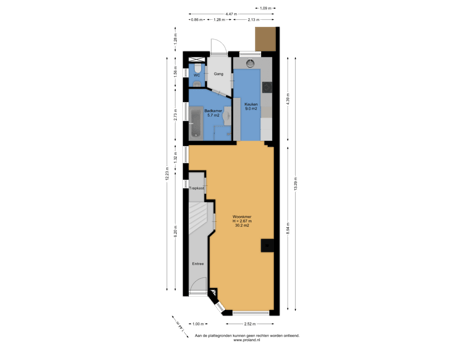 - 115 m² (19.00 metre deep and 6.03 metre wide)
