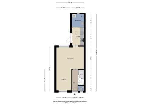 - 77 m² (17.00 metre deep and 4.50 metre wide)