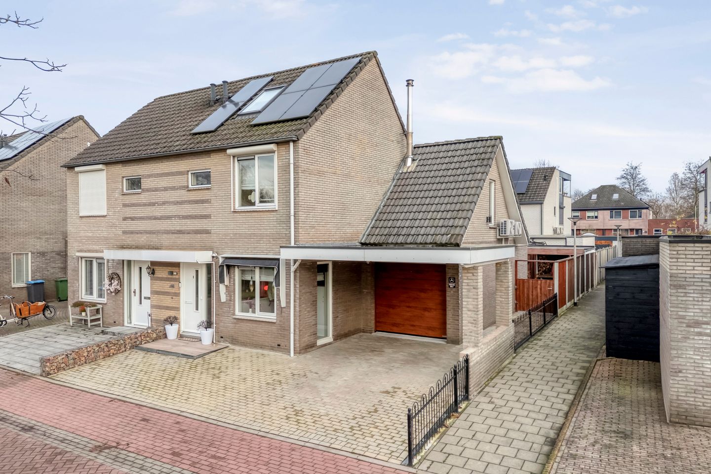 Ook buiten is het volop genieten. De brede achtertuin op het oosten voelt beschut en privé, is verzorgd aangelegd en beschikt over een charmante houten overkapping. Dankzij de eigen achterom is de tuin gemakkelijk bereikbaar. Aan de voorzijde biedt de oprit met carport comfortabele parkeergelegenheid, terwijl de aangebouwde stenen garage met bergvliering extra functionele ruimte toevoegt voor opslag of hobby.