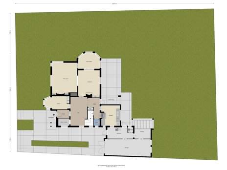 - De prachtige tuin is in opdracht aangelegd door Mien Ruys met de vijverpartij uit 1930, het gazon met de borders en beplanting en de bestrating/terrassen.