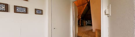 - De 2e verdieping bestaat uit een enorme ruimte welke nog op verschillende manieren ingedeeld kan worden. De hoogte van deze ruimte is immens! Op deze verdieping bevinden zich nu de voormalige dienstbodenkamer, de sauna en oude kasten. De fraaie dakconstructie is nog volledig in het zicht.