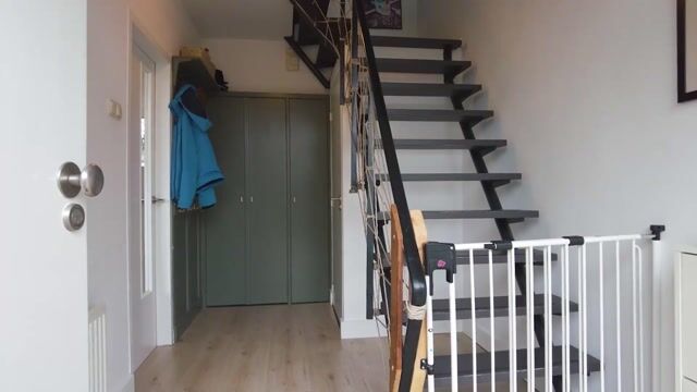 Op de begane grond komt u binnen in een ruime hal die toegang biedt tot de meterkast, de trap naar de eerste verdieping, een praktische trapkast en de woonkamer. De woonkamer is royaal opgezet en dankzij de grote raampartijen geniet u hier van een prettige hoeveelheid natuurlijk licht, wat zorgt voor een open en uitnodigende sfeer. Er is volop ruimte voor een comfortabele zithoek en een gezellige eethoek.