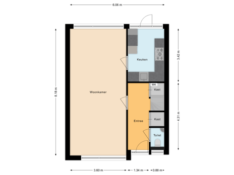 Bij binnenkomst in de entree/hal treft u de meterkast en de toegang tot de woonkamer. De woonkamer is ruim en echt een doorzon woonkamer met aan de voor- en achterzijde van de woning grote raampartijen die ervoor zorgen dat het hier altijd licht en sfeervol is. Via de woonkamer loopt u naar de achterzijde, waar de eetkamer is gesitueerd. Hier is voldoende ruimte voor een grote zespersoons tafel. De goed onderhouden keuken is voorzien van diverse inbouwapparatuur.