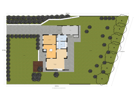 Via de oprit en het tuinpad bereikt u de overdekte entree van de woning met de volgende indeling: