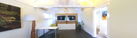 Via de entree/hal zijn beide vertrekken op de begane grond bereikbaar. Het vertrek aan de linkerzijde is zeer ruim van opzet en heeft een prettige,