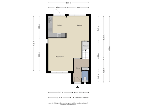 Via de entree/hal betreedt u de woning. Hier bevinden zich tevens de separate toiletruimte, de meterkast, de garderobe en de trapopgang naar de eerste verdieping. Van hieruit heeft u toegang tot de lichte woonkamer.