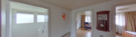 Met de auto rijd je zo de diepe oprit op waar plek genoeg is voor zeker twee auto's. Of wanneer je jouw auto liever droog hebt staan; rijd meteen door de garage in! Via de entree aan de opritzijde kom je "achterom" thuis binnen in de bijkeuken. Handig om meteen je vuile schoenen uit te doen of de hondenpootjes af te vegen. Jouw gasten laat je graag via de voordeur komen. Want dat is er één om te showen! Een royale binnenkomst; de toon is gezet!