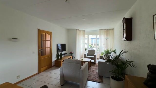De woonkamer is een lichte en uitnodigende leefruimte. Aan de voorzijde zorgt de erker voor extra ruimte, karakter én een fijne hoeveelheid daglicht. Hier is de zithoek gesitueerd: een prettige plek om te ontspannen. Aan de achterzijde vind je de eethoek met openslaande tuindeuren naar de tuin, waardoor binnen en buiten op een natuurlijke manier in elkaar overlopen. De lichte tegelvloer versterkt het ruimtelijke gevoel en vormt een frisse, tijdloze basis.