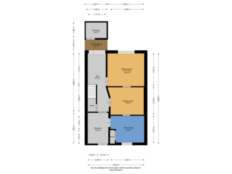 - 9 m² (2,7 meter deep and 3,5 meter broad)