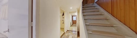 Berging (ca. 6,0 m²; met tweede entreemogelijkheid), aangrenzende wasruimte (ca. 8 m²; met kastruimte), hal met kastruimte, opgang naar de verdieping, achterdeur en aangrenzend kamer (ca. 9 m²) en slaapkamer (ca. 12 m²).