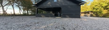 Er is een grote berging, die nu gebruikt wordt als kennel. Deze ruimte is als slaapkamer voorbereid (alleen de opening van de kennel moet dan dichtgemaakt worden). Aan de buitenzijde is nog een grote overkapping.