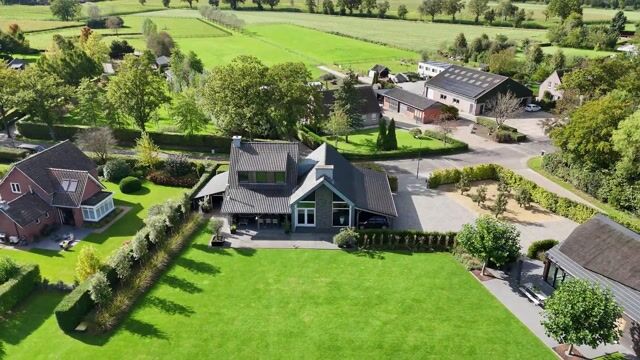 In a unique location on the southern side of Breda, in the village of Galder and bordering the Markdal nature reserve, lies this luxurious detached villa with a multifunctional annex. The entire property sits on an exceptionally generous plot of no less than 25,110 m², spread over five parcels. Here, you live surrounded by greenery, with complete privacy and expansive views over your own lands and the surrounding meadows.