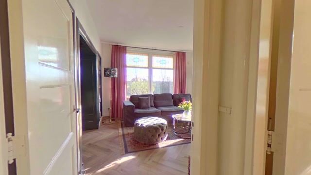 Op de begane grond tref je een riante woonkamer met sfeervolle haardpartij en prachtig zicht op de straat. De fraaie visgraat pvc-vloer, het originele houtwerk en de lichtinval via glas-in-lood geven deze ruimte een warme uitstraling. De werkkamer aan de voorzijde biedt een rustige thuiswerkplek met een knipoog naar het verleden.