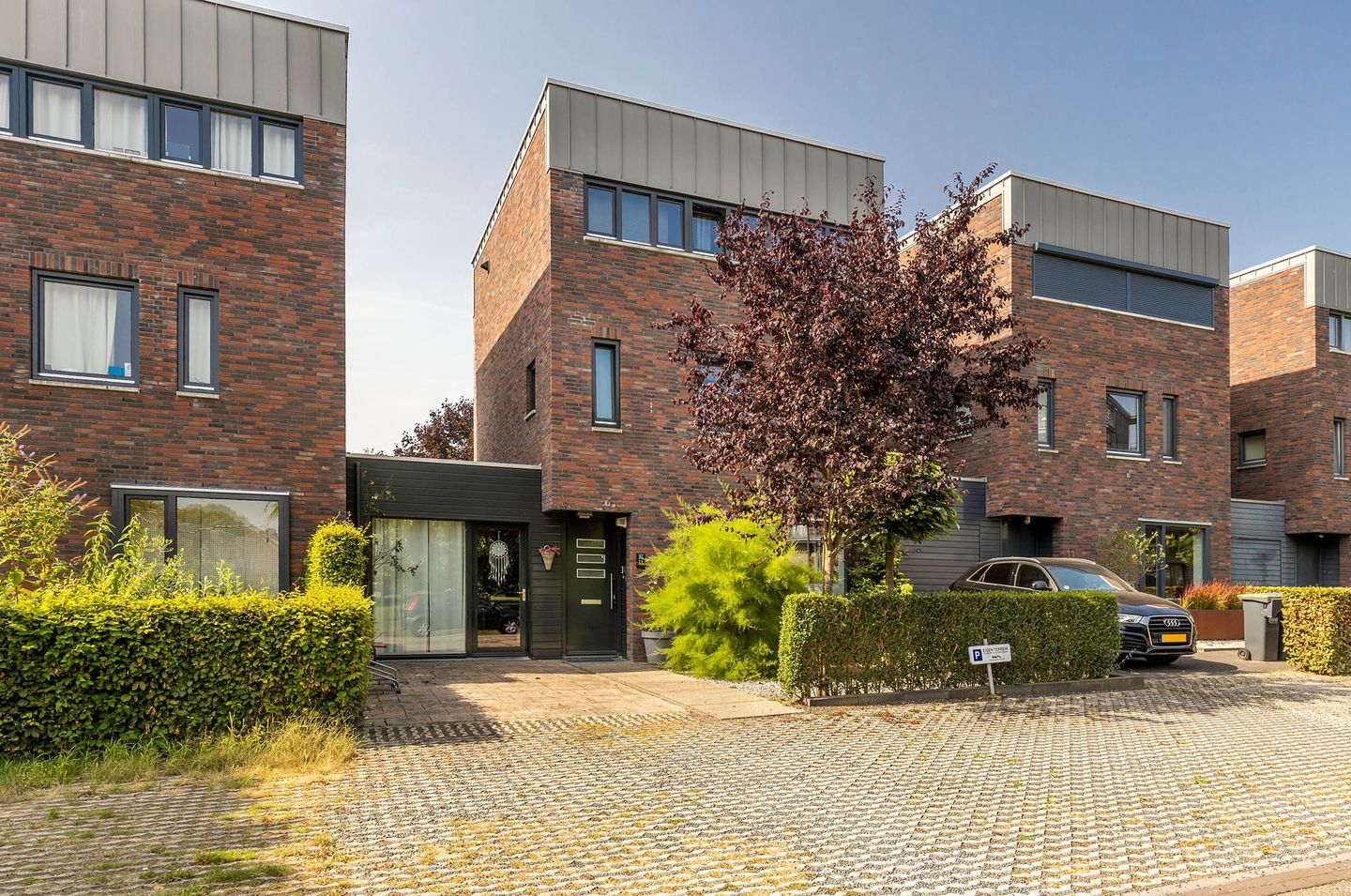 Verzorgde voortuin en oprit met parkeergelegenheid voor 4 auto’s op eigen terrein.