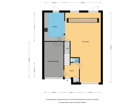 Via de hal bereikbare ruime berging/wasruimte (ca. 5,39 x 2,93 m) voorzien van vinylvloer en aansluitingen voor witgoed. Deze voormalige garage is uitstekend geïsoleerd, voorzien van aansluitpunten voor verwarming en kan eenvoudig verbouwd worden tot kantoor, slaapkamer, badkamer of garage.