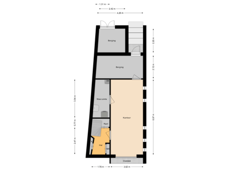 Via de trap komt u in de hal van het souterrain. Hier bevinden zich de meterkast met glasvezelaansluiting en een praktische trapkast. Het souterrain biedt een kantoor-/ hobbyruimte, een berging en de wasruimte. Door de grote raampartij aan de voorzijde valt er veel natuurlijk licht naar binnen, wat de ruimte een prettige en lichte uitstraling geeft. De volledige verdieping is voorzien van een fraaie laminaatvloer en strak stucwerk op wanden en plafond.