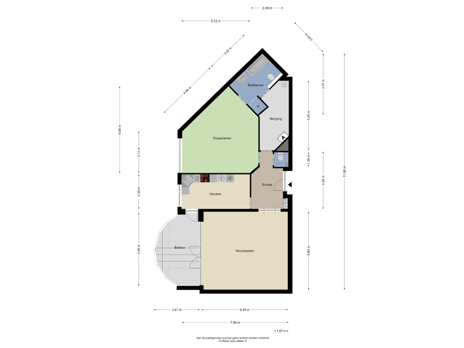Via de badkamer heeft u toegang naar de bijkeuken/berging (ca. 9 m²). Hier hangen de cv-ketel, de mechanische ventilatie en zijn er aansluitpunten voor wasmachine en droger. Ook vanuit de hal kunt u deze bijkeuken bereiken.