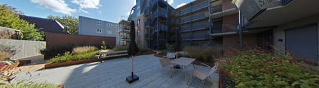 Het complex biedt bovendien voorzieningen die het wonen hier extra bijzonder maken. Op de begane grond bevindt zich de sfeervolle “Hofkamer”, een royale gezamenlijke ruimte met meerdere zithoeken, een complete keuken en een toilet. Hier kunt u deelnemen aan gezellige koffieochtenden of de ruimte reserveren voor privégelegenheden zoals een verjaardag of een diner met familie en vrienden. Voor situaties waarin extra zorg gewenst is, zijn er een slaapkamer en een aparte studio beschikbaar, volledig uitgerust met slaapbank, pantry, badkamer en toilet. Zo is hulp altijd dichtbij, terwijl uw privacy volledig gewaarborgd blijft.